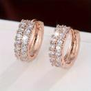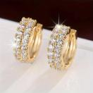 小さなダブルローデザインフープイヤリング 銅 18K金メッキ ジルコニア装飾 シンプルでエレガントなスタイル デートイヤリング
