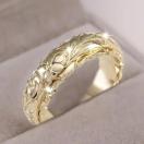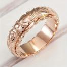 エレガントな彫刻が施されたローズゴールドトーンの銅製リング - 女性用 - 14K金メッキ、キュートなフローラルデザイン、普段使いや結婚式に最適