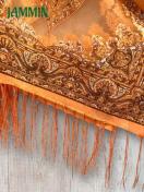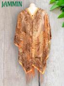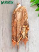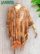 アジアンなペーズリー柄のフリンジ付きレーストップスです。