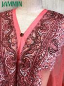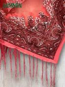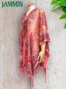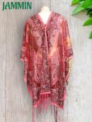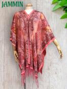 アジアンなペーズリー柄のフリンジ付きレーストップスです。