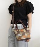 カラフルな幾何学模様が目を引く大人可愛い2WAYバッグです
