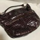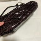 パープルカラーをエナメル加工を施した、ゴージャスなセコイアのバッグ。クロコ柄が大人の妖艶さを演出。大きいサイズで、たくさん荷物を入れられ、インナーはフロントのポケットで区分けされているので、3箇所のスペースを確保。便利で、お洒落なアイテムです☆