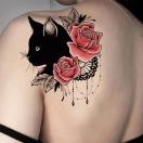 リアルな黒猫&バラのテンポラリータトゥーステッカー - 防水、長持ちするハーフアームボディアートで繊細なルック
