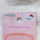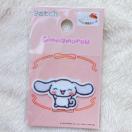 シナモロールのにこにこ笑顔が可愛い刺繍ワッペン。アイロンで簡単に取り付け可能。