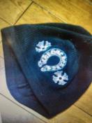 人気のサーマル素材でブラック地にホワイトの刺繍です