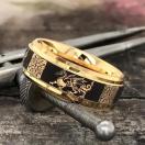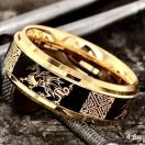 ドラゴンデザインとケルトの結び目模様のメンズファッショナブルなブラック&ゴールドステンレスリング - エレガントなビジネスアクセサリー
