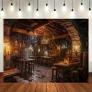 中世居酒屋 ポリエステル製背景幕 一般的な機会に - キャンドルライトの宿屋の内部シーン - 暖炉と木製の家具の装飾 - ユニバーサルホリデーパーティーのフォトブースとスタジオ小道具 - 電気不要 - 羽毛なし