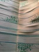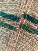 大きめにたたまれて紐で括って保管されており、屋内で扉も付いた棚ですが開け閉めで光に当たる機会あったんだと思います。表面になっていた箇所1畳分が使っている畳のような、わら色になっているのと(画像4)その下の縁が少し同じ色になっています。(画像5.6)