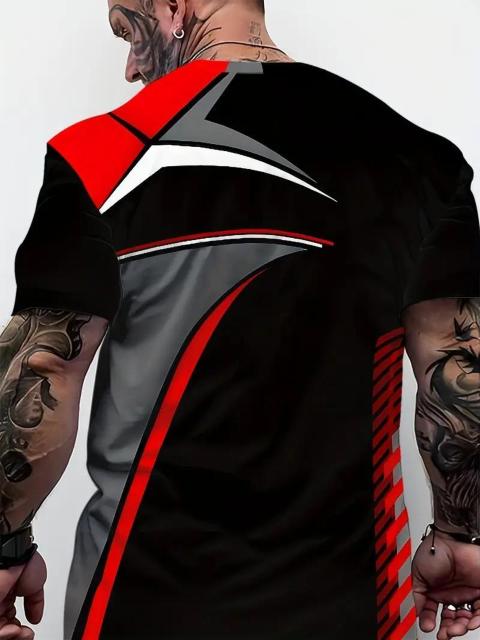 メンズ 3Dプリント Tシャツ、ポリエステルニット生地、クルーネック、レギュラーフィット、通気性のある柄入りスポーツTシャツ、夏のカジュアルフィットネストップ