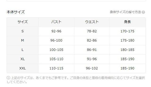 ※画像での表記サイズは米国です。日本サイズは2サイズアップが標準です。(例 米国S→日本L)
