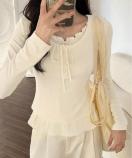 着やせトップス/フェミニンTシャツ/韓国ファッション