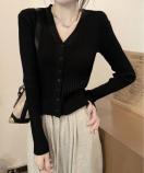 着やせニットカーデ/リブニット 前開き/大人 ニットウェア