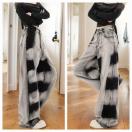 ┗ポケット4個。モデル着用の色違い(濃い色)になります。ストレッチなしですが、ゆったりワイドで動きやすくて楽チン♪綿コットン天然素材で肌触りも良く快適です♪厚すぎず薄すぎず安っぽく見えない程良い、しっかりした生地でオールシーズン着回せて便利♪ムラ染めタイダイ柄がお洒落で高見えしますよ♪太すぎないワイドストレートでシルエットが綺麗です☆ビンテージ加工ウォッシュドダークグレー×黒ブラックムラ染めタイダイ柄がカッコいいロングワイドデニムパンツです☆