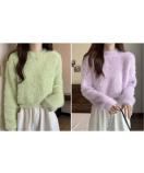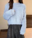 ふわふわ暖かニット/ニットプルオーバー/モヘアニット 長袖