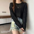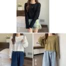 着やせニットトップ/クルーネックニット/長袖着回しニット