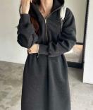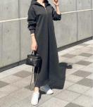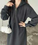 ハーフジップデザインが特別感を演出してくれるパーカーワンピース。