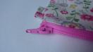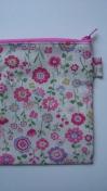 キナリ地にピンク系のカラフルな花柄がとても可愛いポーチです♪