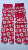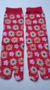 赤地にカラフルな花柄がとても可愛い足袋ソックスです♪