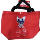 TOKYO2020オリンピックのキャラクター、ミライトワがデザインされたレッドトートバッグ。