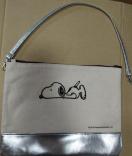 スヌーピーのイラストとメタリックなデザインのクラッチバッグ。
