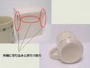 ・マグカップは未使用ですが 元外箱の両端半分程に切り込みと折りシワ2本があります・・・・画像3左 赤印