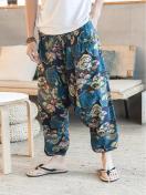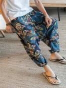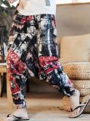mensゆったりカラーファン柄パンツ、綿100%、ポケット付き、カジュアル