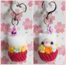 花カゴから顔を出すポンポンで作ったフェレットちゃん♪