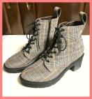 R&Eのかわいい厚底レースアップチェックショートブーツです。