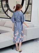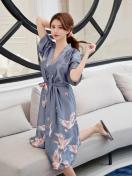 女性用シルク調パジャマ&ローブセット、ゆったりサイズ、夏の涼しげ