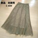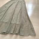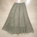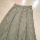 透け感のあるオリーブグリーンのフレアロングスカート。
