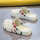 メンズサマートレンディカジュアルサンダル - ホワイトに赤&青のアクセント、柔らかい厚底、耐久性EVA素材、毎日の快適さのためのスリップオンビーチサンダル、夏用サンダル