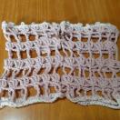 サーモンピンクの糸で編みました。