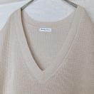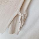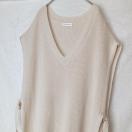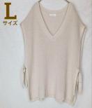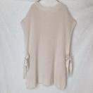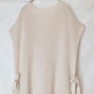 サイドリボン付きのベージュVネックニットベスト、ノースリ ポンチョです。
