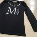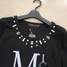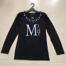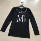 ビジューのネックラインが特徴の黒の長袖Tシャツ。