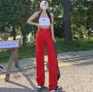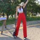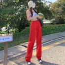 ┗ポケット4個。ワイドシルエットで楽チン♪濃い色で透けない♪綿コットンデニム天然素材で肌触り快適♪ハイウエストで股上が深くて安心♪真っ赤なビタミンカラーが可愛い♪オールシーズン着回せて便利♪ゆったりワイドシルエットで動きやすいですよ♪形も綺麗でカジュアルお洒落可愛いオススメのカラーデニム、ロングストレートワイドパンツです☆
