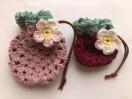 コットン糸で編んだいちごのポーチ♪