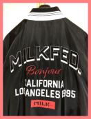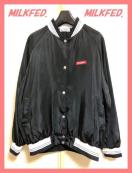 ミルクフェドのかわいい完売バック刺繍ロゴラインスタジャンです。
