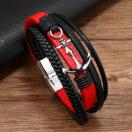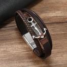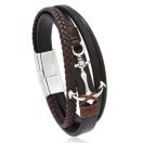 男性用のファンキースタイルのアンカーチャームが付いたレザーブレスレット - ブラックPUレザーリストバンド、磁気クラスプ付き、メッキなしのファッションアクセサリー