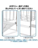 水切りトレーがテーブルに貼り合わせる設計で、水が自然に前に流れ、逆流しにくいです。締切日時
