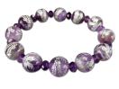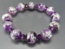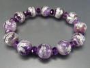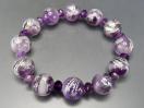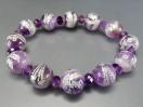 天然石ファントムアメジスト鳳凰彫り銀箔約12mmボタンブレスレット数珠