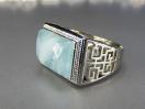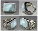 人気天然石 より濃い目 大粒 アクアマリン メンズ指輪 訳有