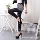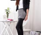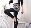 スカート部分は千鳥格子柄、パンツ部分はフェイクレザー。