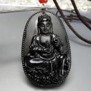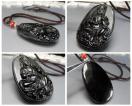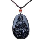 AAA天然石オブシディアン浄瓶観音精工彫り ペンダントトップサイズ縦約60mm 横約38mm 厚さ約12mm