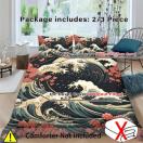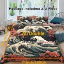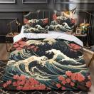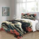 3D ウェーブと桜の花びらの掛け布団カバーセット、2/3 ピース ポリエステル製ベッドスプレッドキット、ジッパー開閉、オールシーズン快適、洗濯機洗い可 - 掛け布団本体は含まれていません