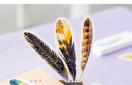 綺麗な鳥の羽のしおりです。様々な種類の鳥の羽が入っています。鳥好きの方へのプレゼントにも◎