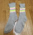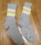 ライトグレーにネオンイエローとピンクのボーダーのアクリル混のニットソックス