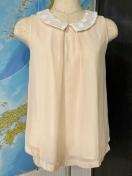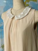 刺繍入り白襟のベージュノースリーブトップス。
