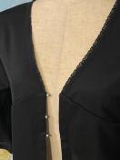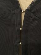レース付きのVネックデザインで、ストレッチ素材の五分袖カーディガン。