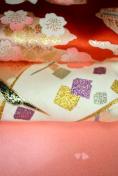 ・優しい地色に華やかな鶴が飛び誇り