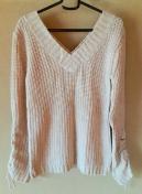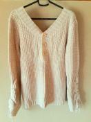 セーター ニット 大きいサイズ トップス プルオーバー 後ろボタンデザイン ベージュ L レディース 女性 洋服 袖リボン